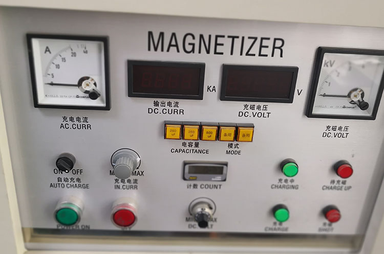 第一步,打开充磁机,把充磁电压调到对应的档上,选择好充磁电容。